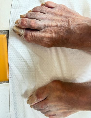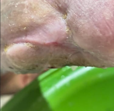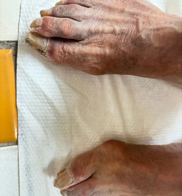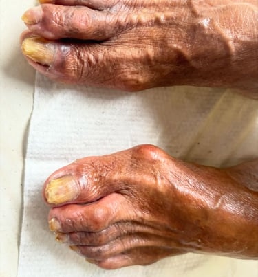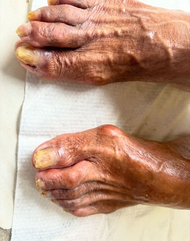 Cuidados para pés e unhas, prevenção e tratamento para correção de unhas, manejo de calosidades, tratamento de fissuras, prevenção e tratamento de feridas — especialmente em pacientes diabéticos, idosos ou com problemas circulatórios